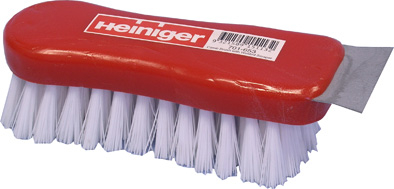 Čistící kartáč Heiniger speciál na čištění spodních nožů stříhacích strojků - slouží k čištění stříhacích strojků, zejména spodních nožů strojků pro ovce, dobytek a koně. Kovová hrana odstraňuje olej a kartáč odstraní zbytek nečistot. Nejlépe je provádíět očistu před každou přestávkou, dokud je olej ještě měkký, aby stříhací nůž následně lépe vnikal do vlny. Jakmile se olej zchladí a zatvrdne, již se dostává ze stříhacích nožů velmi těžko.