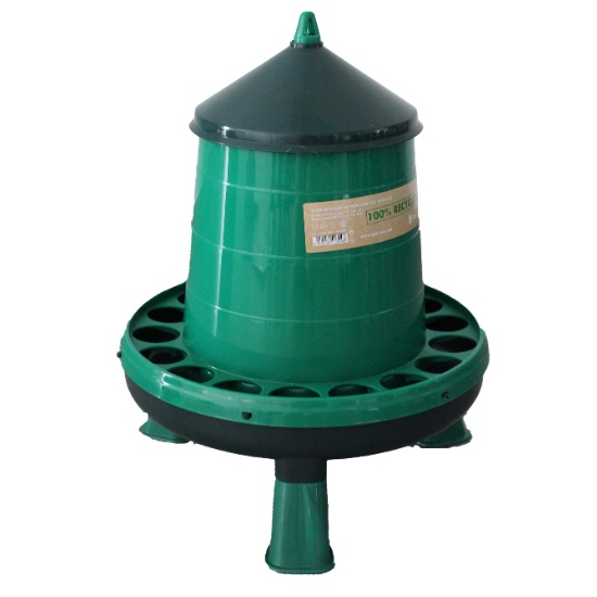 EKO Násypné krmítko tubusové pro drůbež, slepice 2 kg GAUN s nožičkami , vyrobené ze 100% recyklovaného plastu - závěsné krmítko pro kuřata, slepice, krůty, husy, kachny a další drůbež z odolného plastu - polypropylen, snadno se čistí.