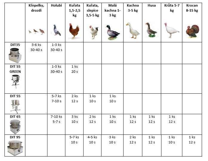 Drůbež se spaří ve vodě o teplotě 60-70°C, aby se peří dalo lehce oškubat. Drůbež vložíte do středu bubnu, pustíte přívod vody, zavřete bezpečnostní víko, stisknete tlačítko a oškubete ji za 8 až 10 sekund, zastavíte škubačku, otevřete víko a vyndáte oškubanou drůbež.