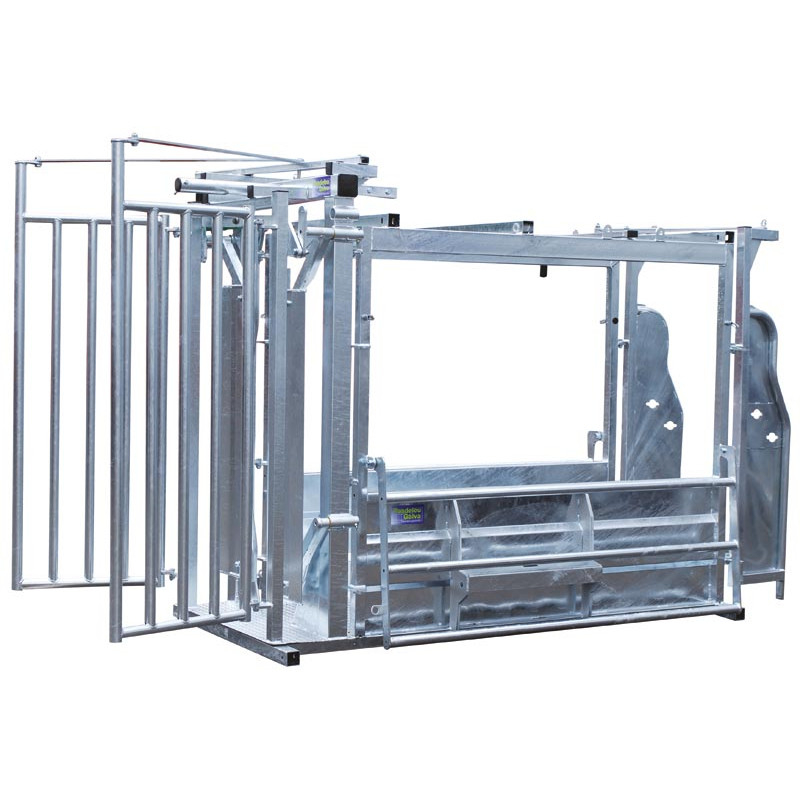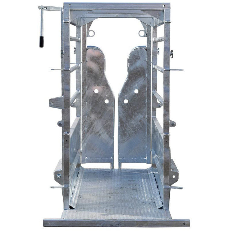 - Snímatelný 3-bodový transportní závěs, který lze umístit buď vlevo nebo vpravo, aby byl přístup k levé nebo pravé části zvířete.