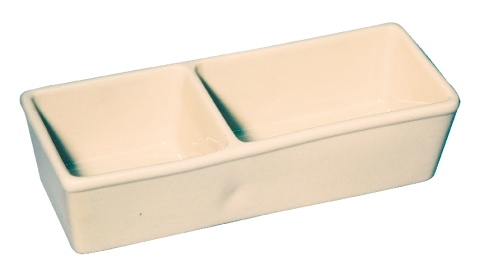 Keramická kameninová miska dvojitá na krmivo pro králíky - objem misek 350 ml + 450 ml. Krmná kameninová miska se používá především jako kameninové krmítko na krmivo pro králíky a pro drůbež, ale využívají ji i mnozí chovatelé psů. Kameninová miska na krmení králíků je glazurovaná.