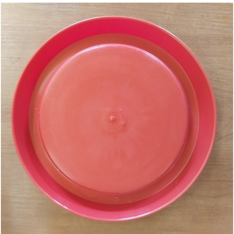 Náhradní miska pro kloboukovou napáječku pro křepelky, kuřata, slepice, drůbež 3 l River - náhradní spodní červená miska pro 3l napáječku.
