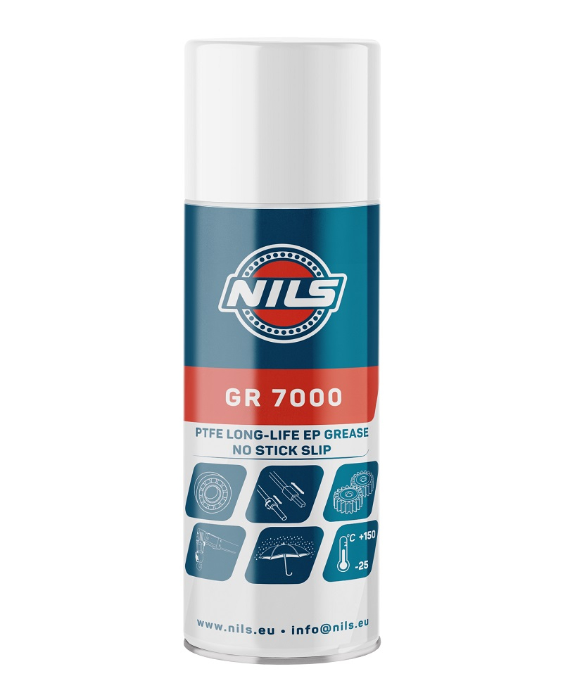 NILS GR 7000 EP2 vysokoteplotní teflonová vazelína ve spreji na ložiska, teleskopy, převody 400 ml - mazivo nanášené sprejem, které se vyznačuje výjimečnou mechanickou odolností i při vystavení vysokým tlakům. Dokonalá kombinace syntetického základového oleje, lithných komplexních mýdel a odborných aditiv dodává produktu tuto zvláštní mechanickou odolnost.