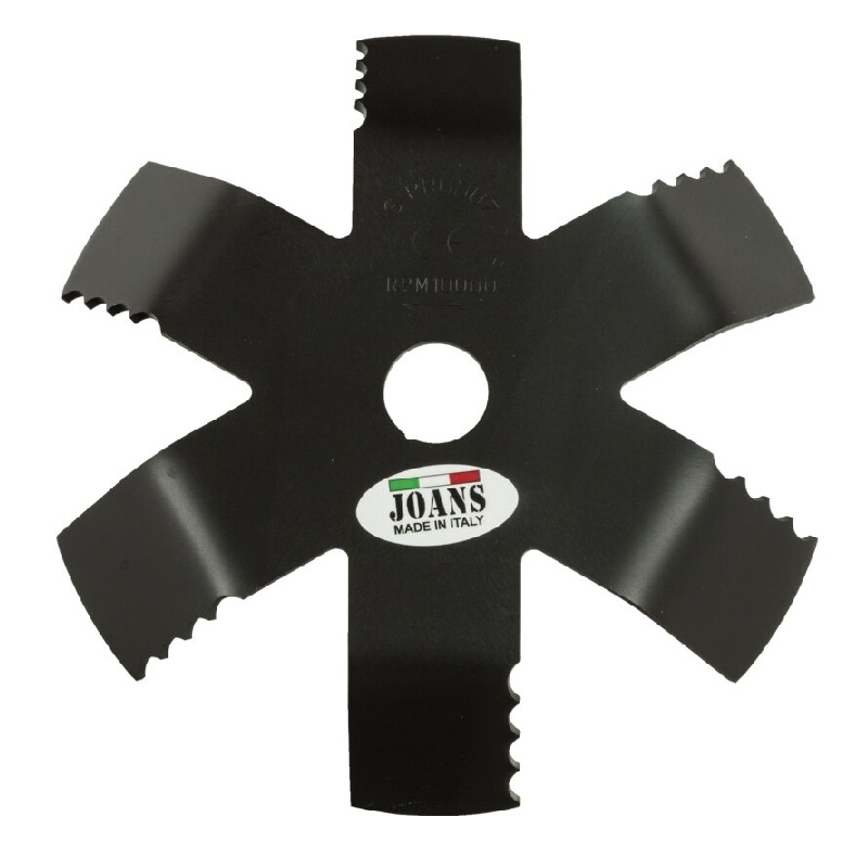 Nůž na křovinořez zahnutý 6 zubů šířka řezu 200 mm otvor 25 mm na kypření půdy JOANS - tento řezný nůž umožňuje zařezávání do trávníku podobně jako rotační kypřič.
