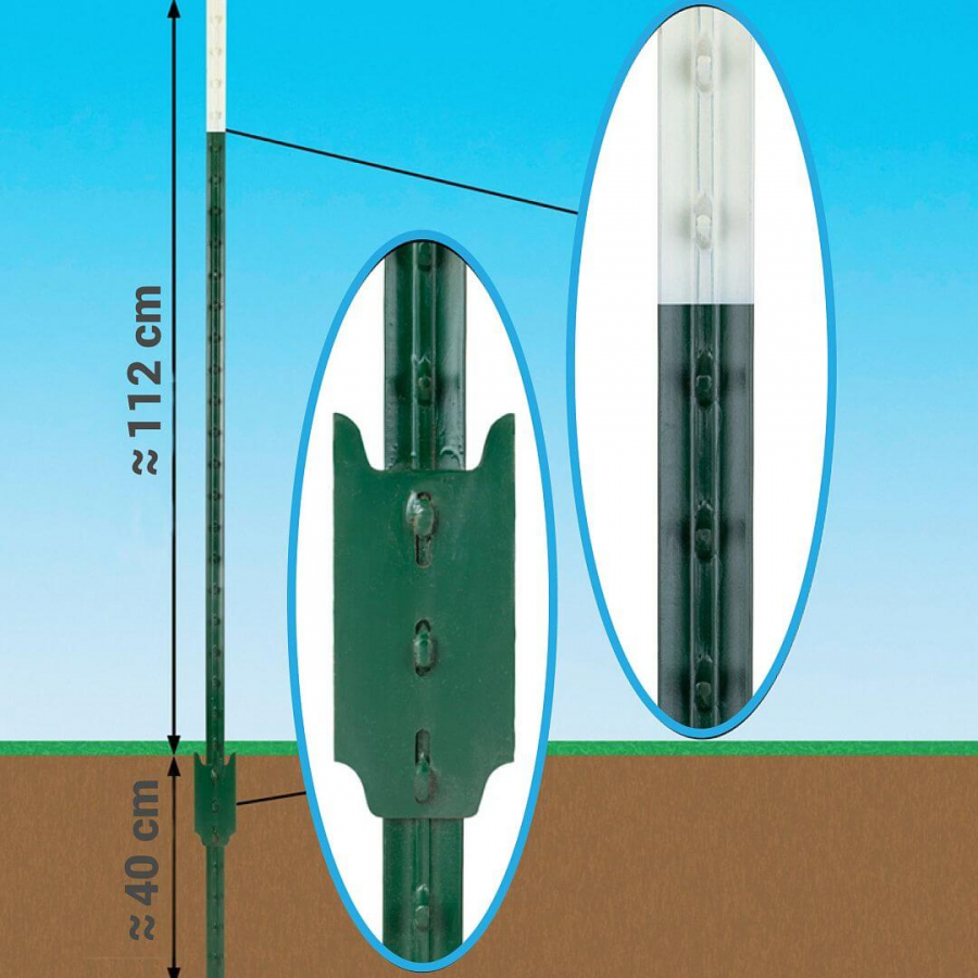 Tenký T-profil umožňuje snadné zatloukání sloupku do země, zatímco masivní stupačka pomáhá zajistit pevné a bezpečné ukotvení v terénu. Sloupek je opatřen povrchovou úpravou, která jej chrání před korozí a nepříznivými povětrnostními podmínkami.