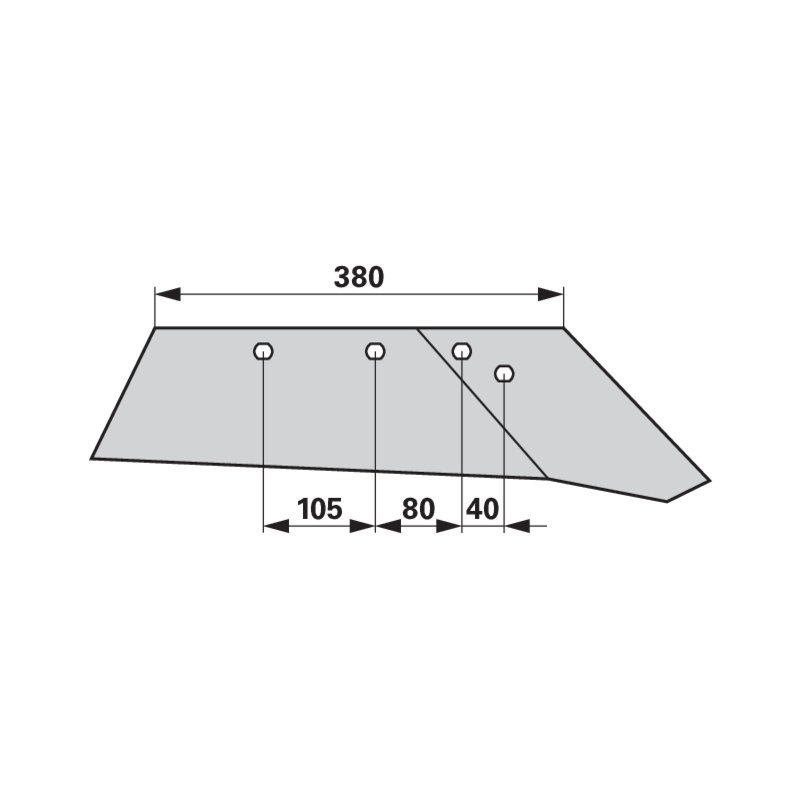 Ostří pravé na pluh Regent 380 mm - opotřebitelný náhradní díl pro pluhy Regent referenční číslo 33.18.404, DU 440 SR.