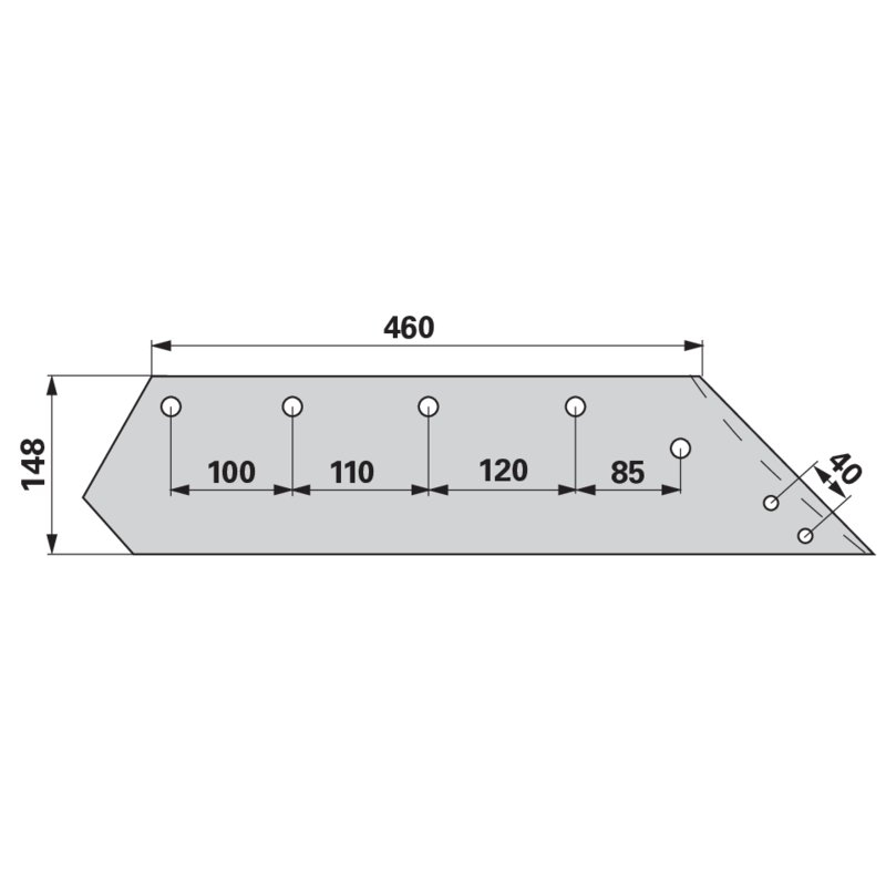 Výměnné pluhové ostří pro dláto levé 18" na pluh Kverneland, Pöttinger - výrobceFRANK - rozměry 460 x 148 x 11 mm, opotřebitelný náhradní díl na pluhy Kverneland, Pöttinger, referenční číslo 073007, KK073007, 56034073007.