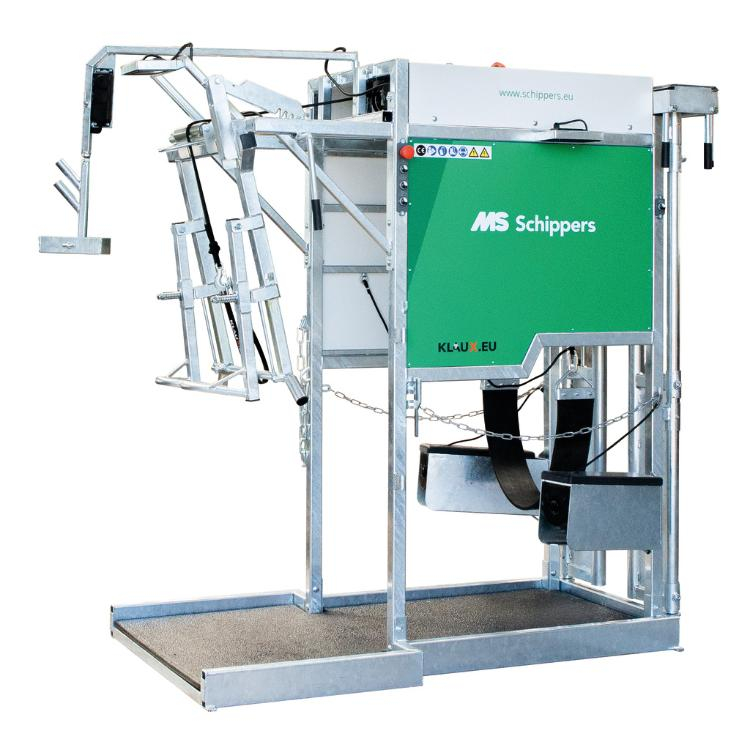 Klaux MS Hoof-trimming chute Platinum je efektivní, plně elektrická paznehtářská klec s moderní konstrukcí a vysokou ergonomií. Díky uzavřeným bokům, celoplošnému LED osvětlení a bezpečnému 24V řízení je ideální pro farmáře, veterináře i paznehtáře, kteří vyžadují bezpečnou a komfortní práci.