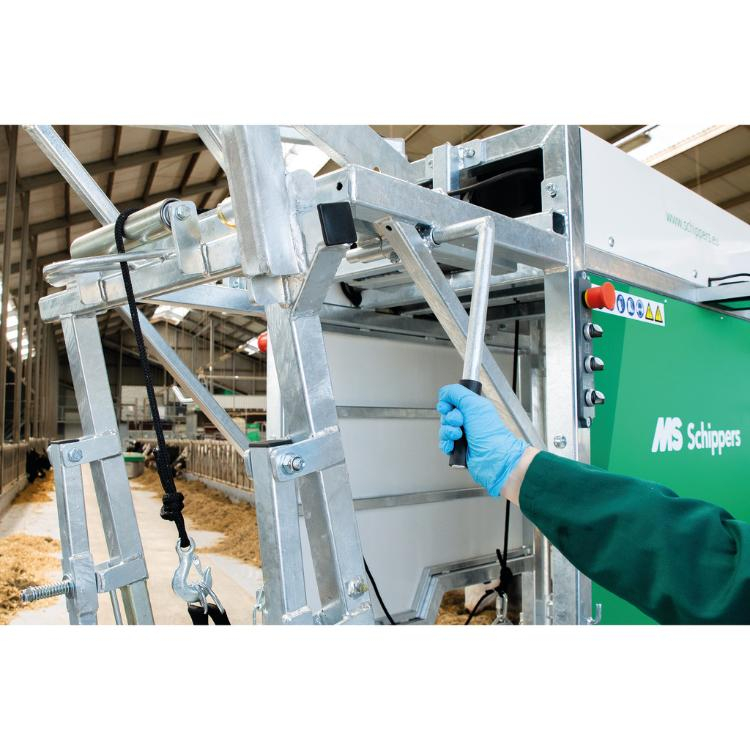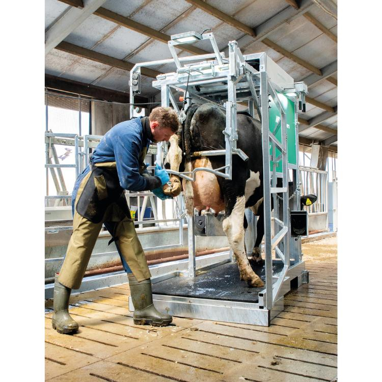 Klec je navržena tak, aby poskytovala maximální pracovní pohodlí a bezpečnost — jak pro zvíře, tak pro obsluhu. Je vhodná i pro vyšší plemena krav.
