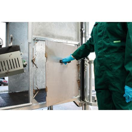 Klaux Titanium je plně hydraulická paznehtářská klec s pohonem na 220 V, určená pro větší farmy, veterináře a profesionální paznehtáře. Součástí klece je také Dry Period Hatch – speciální kontrolní dvířka, která umožňují bezpečnou kontrolu vemene suchostojných krav před, během i po ošetření.