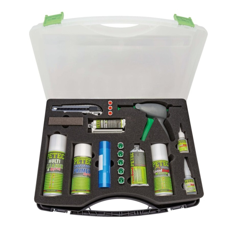 Profesionální sada na opravu plastů PETEC s vysoce výkonným lepidlem - opravárenská sada pro profesionální opravy plastů a jejich součástí.