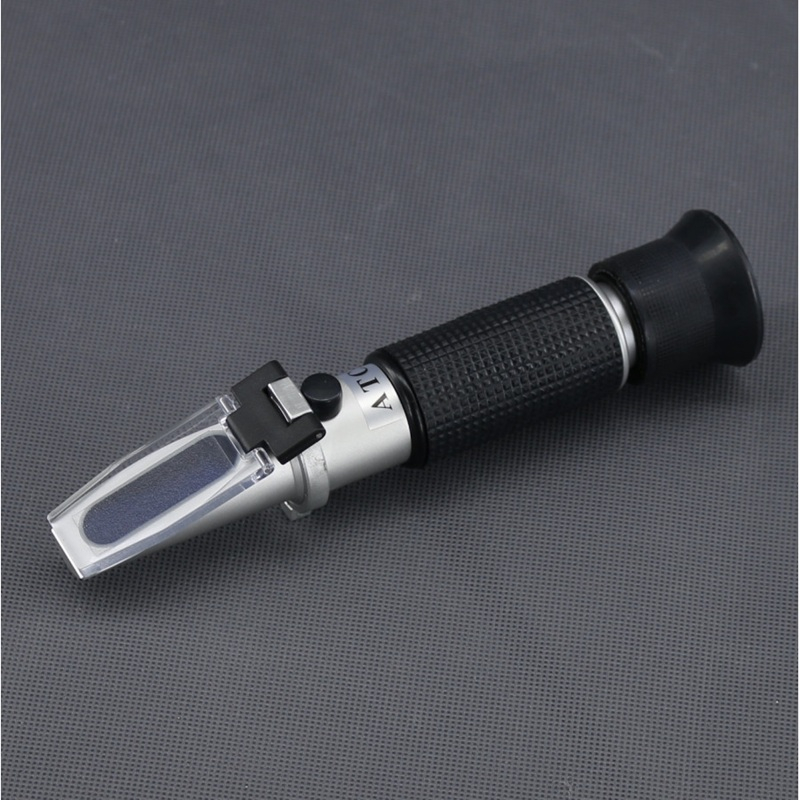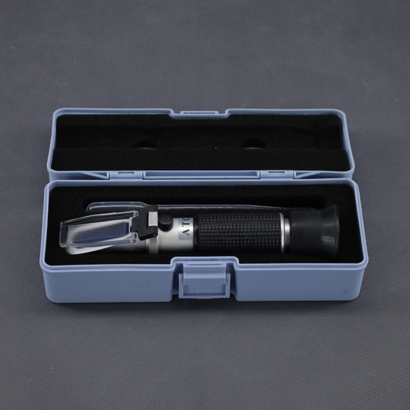 Refraktometr Brix VT76 na med, kvas, cukr, alkohol, víno pro měření cukernatosti 0 až 32 % - refraktometr je optický přístroj, který pomocí lomu světla dokáže měřit vlastnosti kapalin. Refraktometr, brixmetr slouží k měření a zobrazení obsahu cukru v tekutinách jako např. alkoholu, medu, džusech, vínu, kvasu, sirupech, džemech nebo kondenzovaném mléku. Refraktometr VT76 umožňuje zobrazení množství cukru v rozmezí 0-32 % Brix.