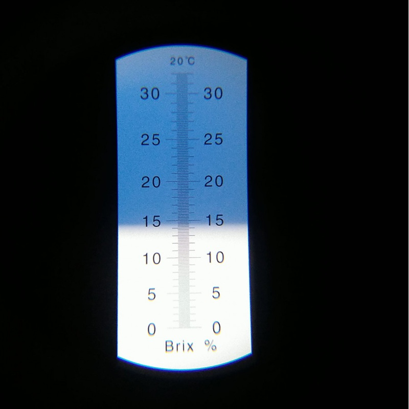 Refraktometr pracuje na principu optického hranolu, na který se kápne několik kapek měřené látky. Následně se vzorek přiklopí krytkou, aby se látka rozprostřela po ploše hranolu. Refraktometr namíříte na světlo a podíváte se do okuláru přístroje, který případně zaostříte. V zorném poli se objeví stupnice, kde lze ihned odečíst hodnotu cukernatosti v % (stupnice se rozdělí na osvětlenou a neosvětlenou).