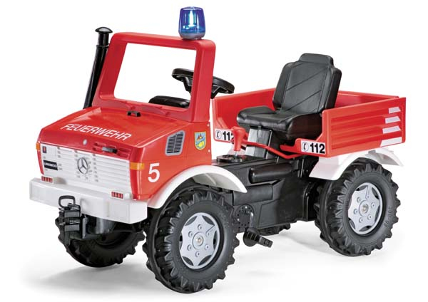Rolly Toys - Mercedes-Benz Unimog šlapací požární auto s řazením, brzdami, majákem modelová řada X-Trac - rozměry 1180 x 550 x 730 mm. Šlapací autíčko má plastová kola. Snadná ovladatelnost, vysoká kvalita plastu. Testováno na zatížení 100 kg.