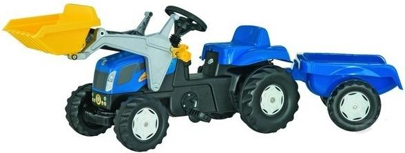 Rolly Toys - šlapací traktor New Holland T7040 s přívěsem a čelním nakladačem modelová řada Rolly Kid, rozměry 1690 x 470 x 520 mm. Snadná ovladatelnost, vysoká kvalita plastu, otevírací kapota motoru. Testováno na zatížení 100 kg.