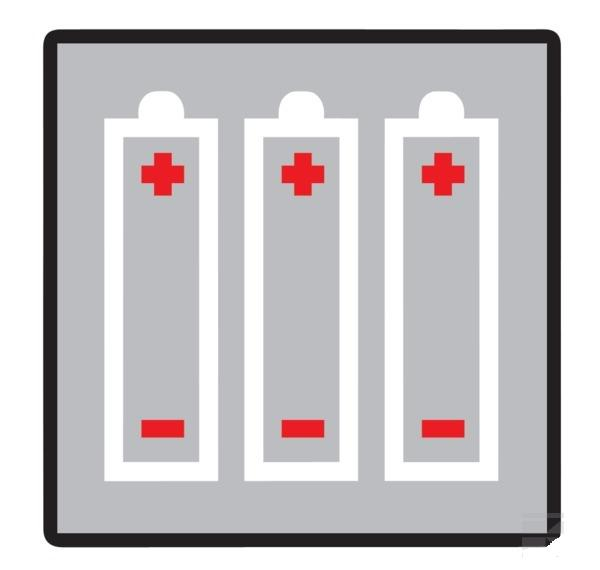 Model je napájen třemi standardními bateriemi „AAA“. Lze také použít dobíjecí baterie stejného typu. Pokud baterie během provozu klesnou pod určitou úroveň, kontrolka rychle bliká, což značí, že baterie budou brzy vybité.