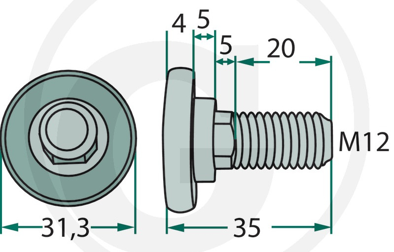 Šroub na nože rotační sekačky Deutz-Fahr, Stoll-JF, Vicon M12 x 35 komplet s maticí, balení 5 ks