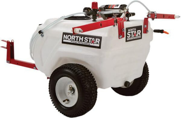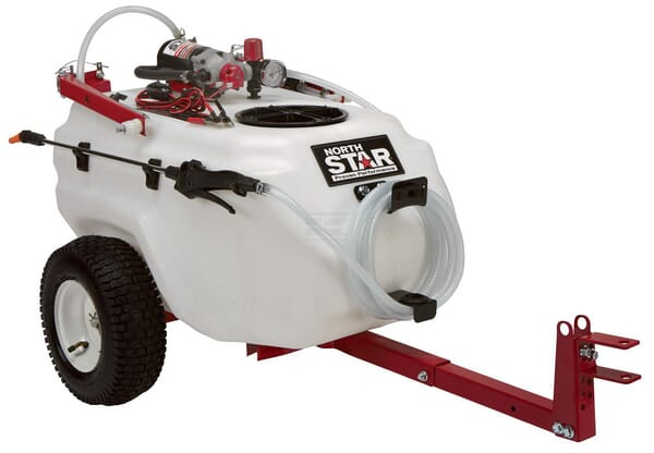 Tažený postřikovač NorthStar 79 l za zahradní traktor, čtyřkolku - kompletní postřikovač s postřikovacím ramenem, nástavcem a plynulou regulací tlaku. Postřikovací rameno s vysokým objemem zajišťuje rychlou a efektivní práci. Nástavec s možností regulace postřiku od jednotného proudu po jemnou mlhu.