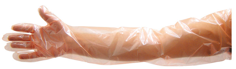 Dlouhé vyšetřovací 5-ti prsté rukavice se používají pro ranou diagnostiku březosti krav.