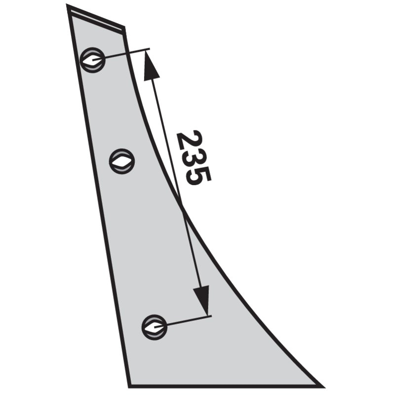 Výměnný díl pravý na pluh Kverneland, Pöttinger přední díl pro orební těleso 19, 30 výrobce FRANK - rozměr 375 x 170 x 15 mm, opotřebitelný náhradní díl pluhu Kverneland, Pöttinger, referenční číslo 073230, KK073230. Pluhové šrouby s maticemi (nejsou zahrnuty v ceně): 3 ks 1801230HU10.