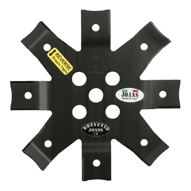 Žací nůž na křovinořez 8 zubů šířka řezu 250 mm otvor 20 mm tloušťka 3 mm na trávu JOANS - řezné hrany z robustní speciální oceli jsou odolné proti opotřebení a umožňují posečení jemné čerstvé vegetace.